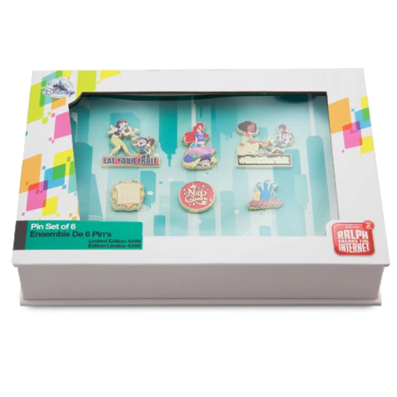 Vanellope is having fun and learning a lot with her new friends, the Princesses, on this six-piece limited edition enameled cloisonné pin set inspired by Ralph Breaks the Internet.