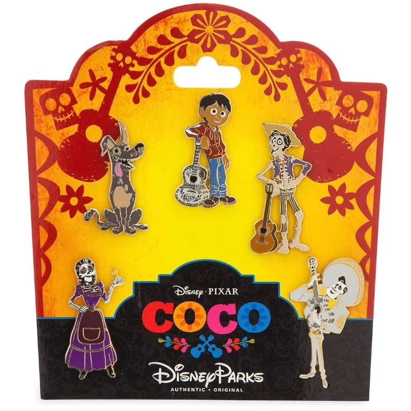 This Coco Pin Trading Booster Set will tug your heartstrings as you recall the musical memories of this animated classic. Coco, Dante, Ernesto de la Cruz, Héctor and Mamá Imelda will make harmonious additions to your collection.