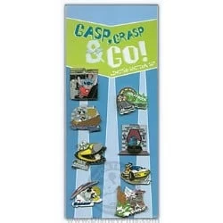 The Gasp, Grasp & Go! Collection contains eight (8) pins, seven (7) Limited Edition pins and one (1) completer pin, featuring exciting attractions throughout the Walt Disney World Resort. The completer pin is only available with the entire collection and will not be sold separately. The following eight (8) pins are contained in this set: