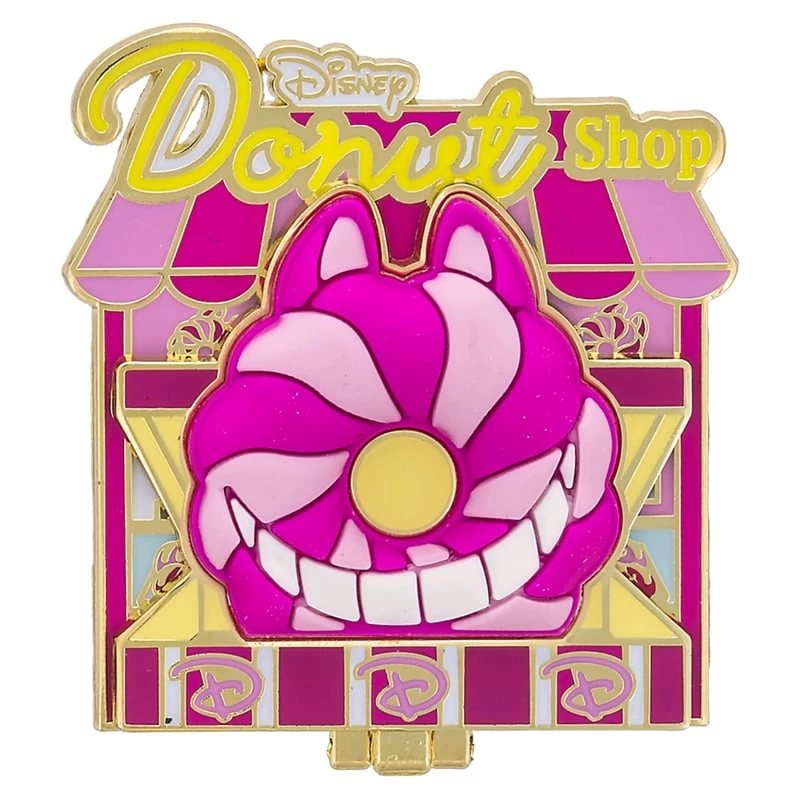 This is a pin of the month collection for 2018. It features donuts decorated as some of the more popular Disney Characters. This month features Cheshire Cat from Alice in Wonderland.