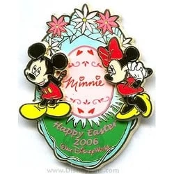 Mickey Mouse has decorated an Easter egg for his sweetheart Minnie Mouse to celebrate Easter 2006 at the Walt Disney World Resort. This Limited Edition pin features Mickey and Minnie as pins-on-pin.