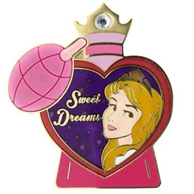 This pins design features Aurora. The back card is scented with a rose perfume. This pin is 3 out of a series of 12.