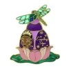 This pins design features the beautiful Jasmine from Disney’s Aladdin. This pin is shaped like a perfume bottle it features a bright yellow stained glass top which looks like a bottle stopper. The bottle is decorated with three orange faceted stones and features a 3-D PVC element. An image of Jasmine is featured inside the bottle and the backer card is scented with a rose perfume. This pin is the eighth in a series of twelve pins.