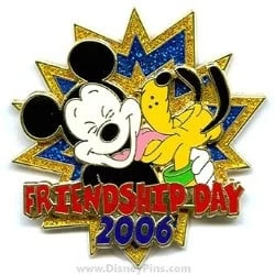 Mickey Mouse and Pluto are enjoying each others company celebrating Friendship Day 2006. This friendly holiday is celebrated on August 6, 2006. Mickey and Pluto are a pin-on-pin.