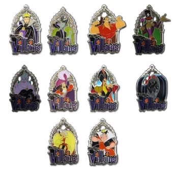 The 2012 Mickey’s Not So Scary Halloween Party limited release mystery pin collections plus chasers pins features all of your favorite Disney Villains. Edition size of the chaser pin is 150. This pin set will be released at the Magic Kingdom Park during the evening parties.
