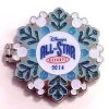 This ornament shaped pin features Minnie Mouse celebrating the holidays at Beach Club Resort. This pin features glitter and a string which allows it to be hung like an ornament.
