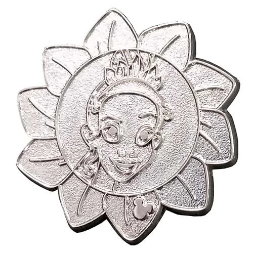 This is the silver chaser pin #19 of #20 from the Lanyard collection of 2011 Hidden Mickey Pins at WDW. It features Tiana on a flower.