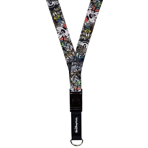 Display your pin collection on this stylish lanyard featuring Mickey Mouse, Goofy, Donald Duck, and Pluto in a graffiti style.