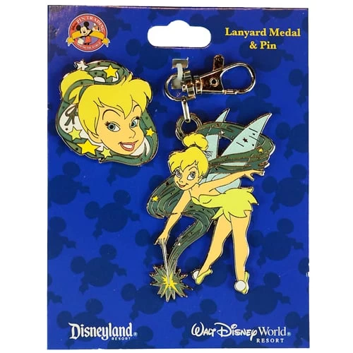 This lanyard medal and pin set features Tinker Bell. The lanyard medal can be attached to decorate your favorite lanyard.