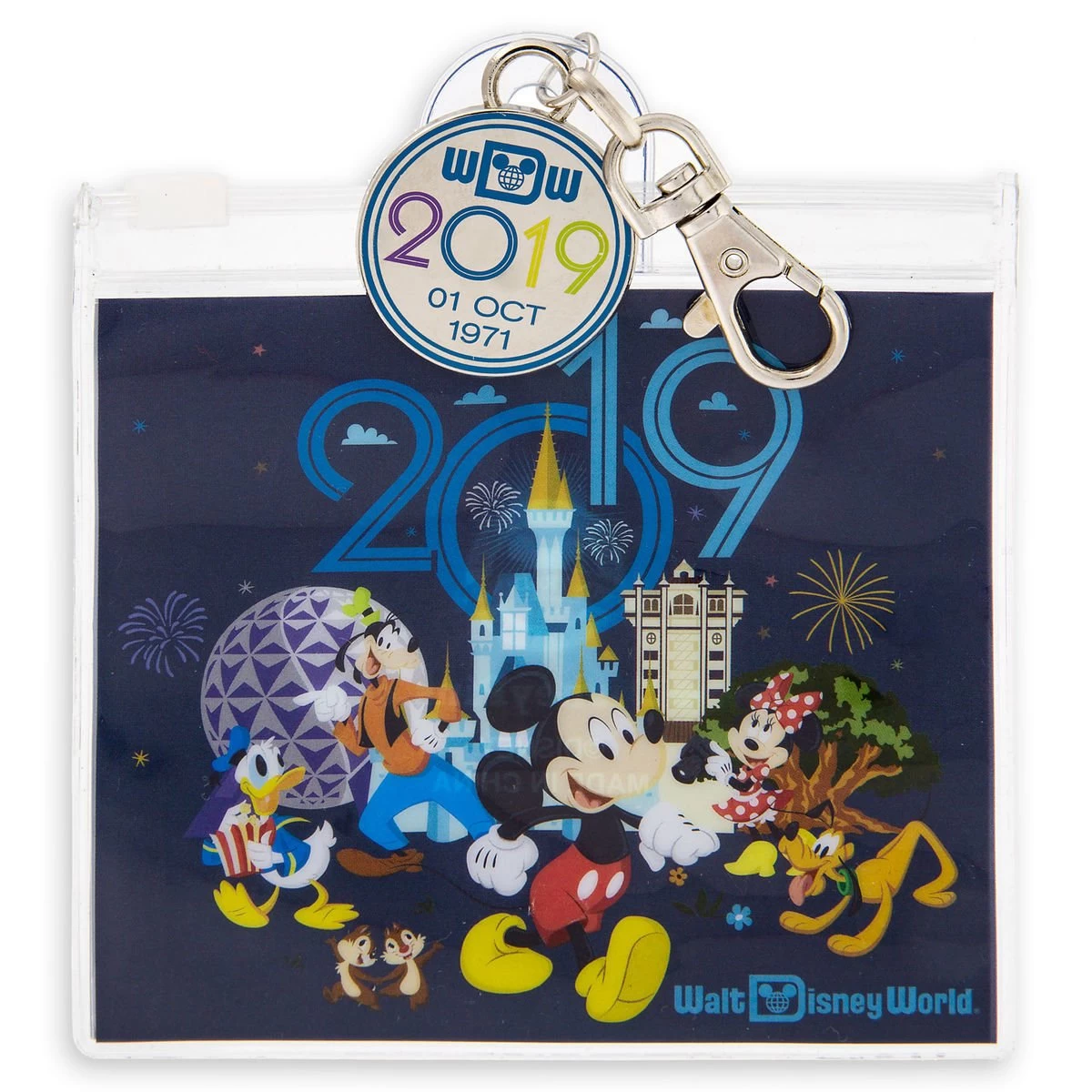 Commemorate your annual Walt Disney World celebration with the 2019 lanyard pouch. Clip it to the bottom of your lanyard to hold an Annual Passport, cards, or pin trading essentials while making magic and memories.