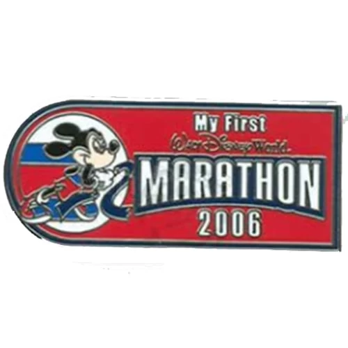 Guests participating in their first Walt Disney World Marathon can commemorate their experience with this Limited Edition pin. Mickey Mouse is pictured crossing the finish line!