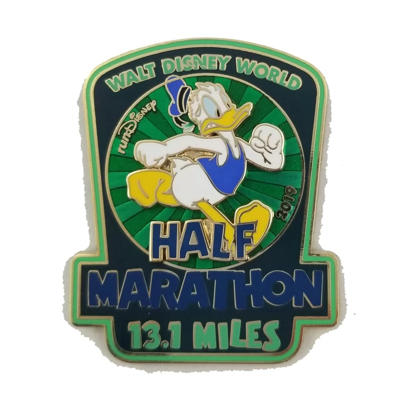 This runDisney 2019 Marathon Weekend pin is Limited Release. It features the 13.1 mile race with Donald Duck running. A must-have for any runDisney Marathoners!