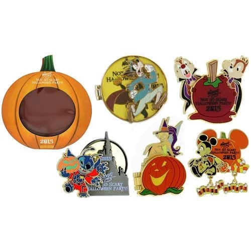 With this limited edition set you get five (5) festive Halloween themed pins all in a pumpkin shaped box created especially for Mickey’s Not So Scary Halloween Party.