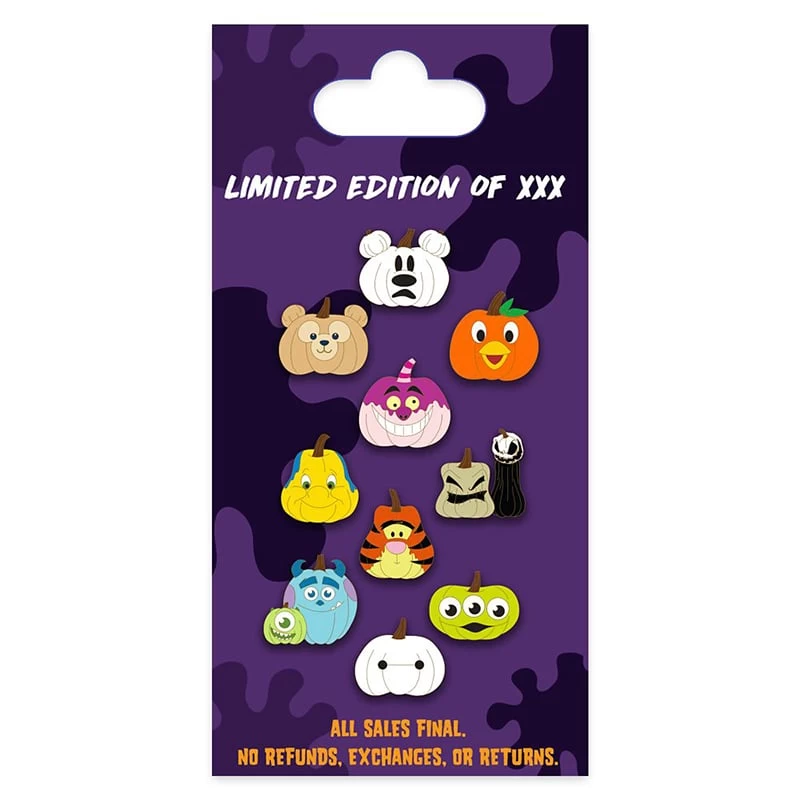 Celebrate the spooky season with this Painted Pumpkins Mystery Pin Collection. Each blind pack contains two randomly selected pins from a possibility of 10 different designs presenting a harvest of Disney characters seen as jack-o’-lanterns.