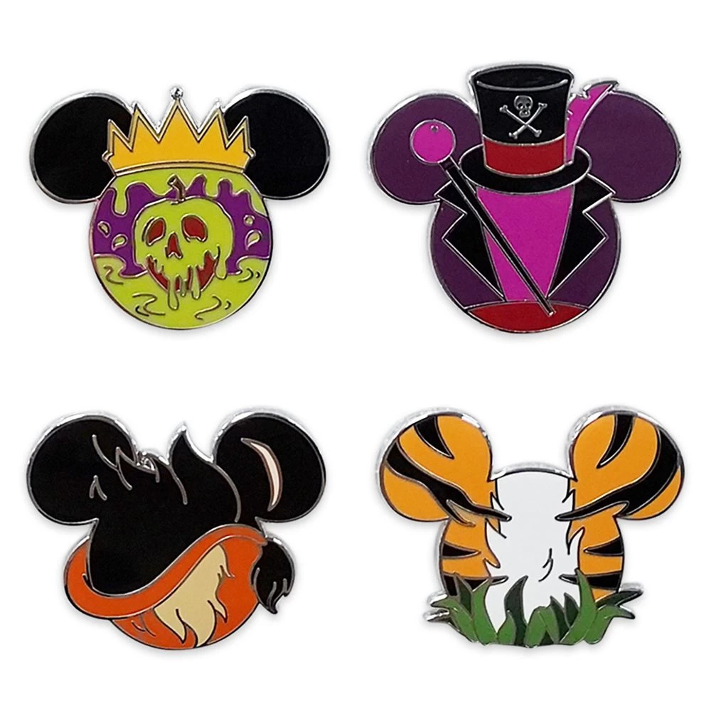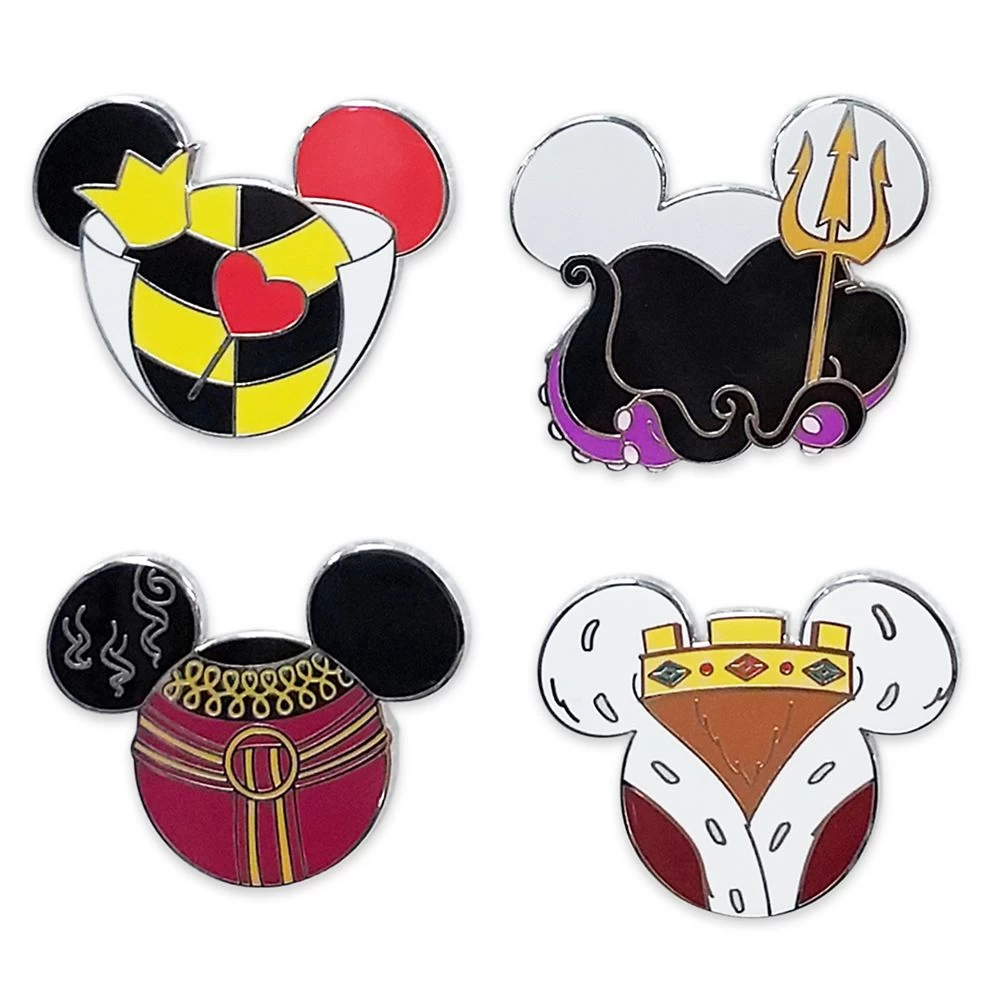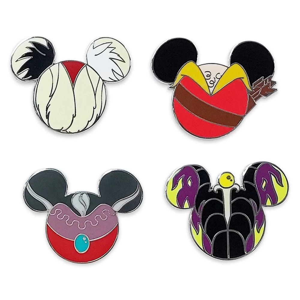 - Each pin in this series features a Mickey Mouse icon themed to a different Disney Villain, including Captain Hook, Chernobog, Cruella De Vil, Gaston, Hades, Jafar, Lady Tremaine, Maleficent, Queen of Hearts, Ursula, Wicked Queen, Dr. Facilier, Mother Gothel, Prince John, Scar, and Shere Khan