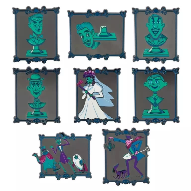 Happy haunts materialize in this Mystery Pin Collection filled with unexpected surprises. Each blind pack contains two randomly selected portrait pins from a possibility of eight different designs inspired by Disney’s thrilling, chilling The Haunted Mansion attraction.