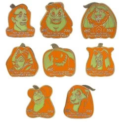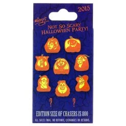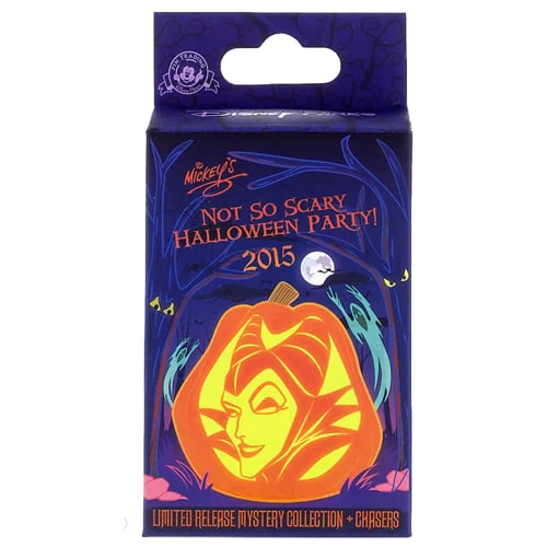This is the limited release 2015 Mickey’s Not So Scary Halloween Party Mystery Set. The collection contains a total of ten (10) pins and you will receive only the pin you choose. The pins have glow in the dark fill.