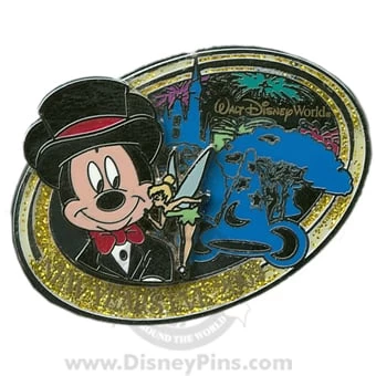 This pin commemorates New Year’s Eve 2009 and features Mickey Mouse and Tinker Bell in front of icons of the four Walt Disney World Theme Parks.
