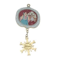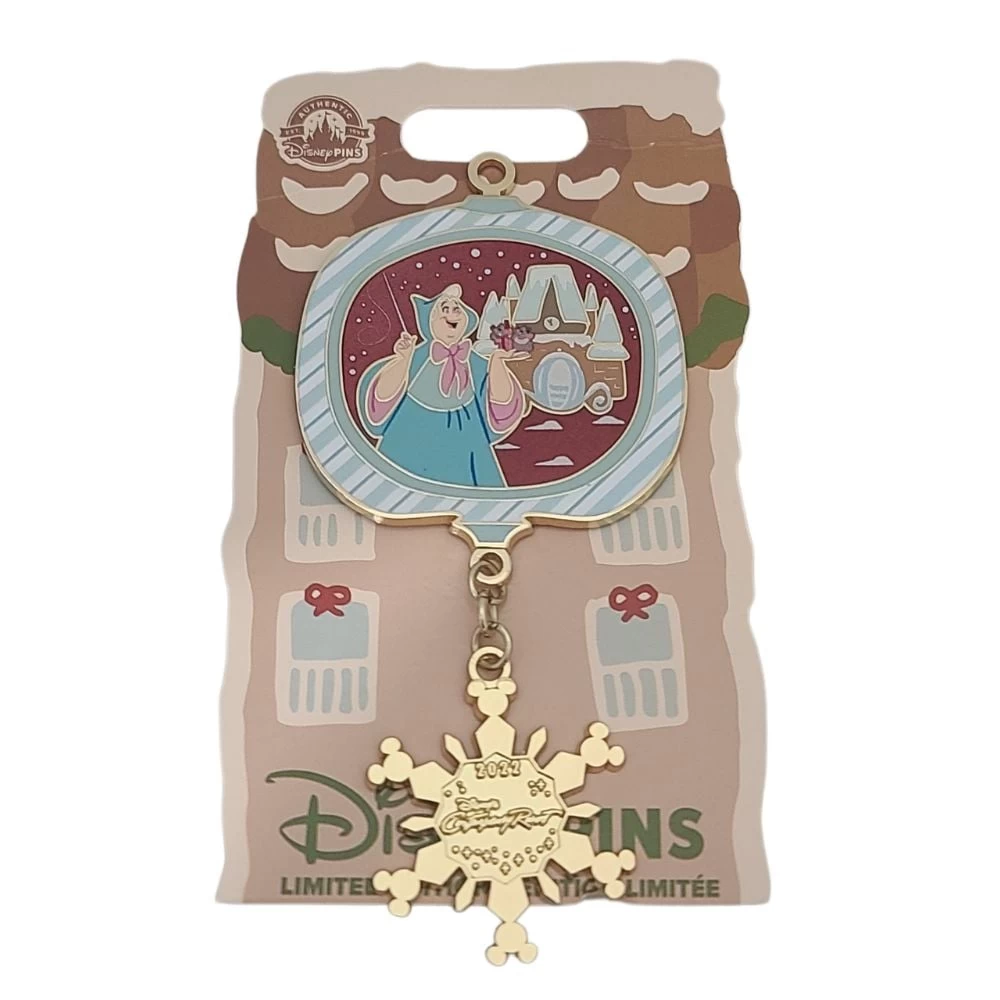 It’s a pin! It’s an ornament! It’s both! You can hang this LE 3000 pin on your tree by slipping an ornament hanger through the hole in the top of this pin which features the Fairy Godmother from Disney’s Cinderella on top of a snowflake dangle with the Contemporary Resort logo.