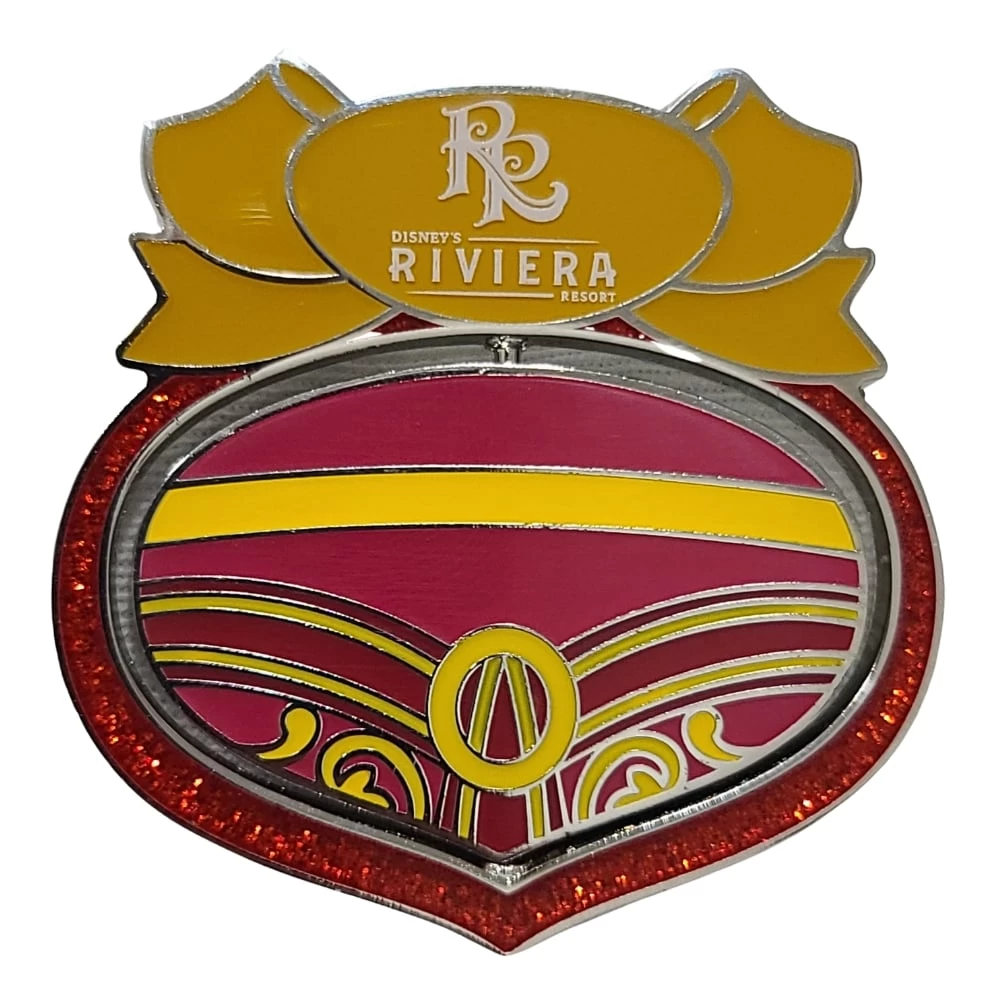 This 2022 holiday resort collection spinner pin is Limited Edition 3000 and features Rapunzel and Mother Gothel from Disney’s Tangled and the Riviera Resort Logo.