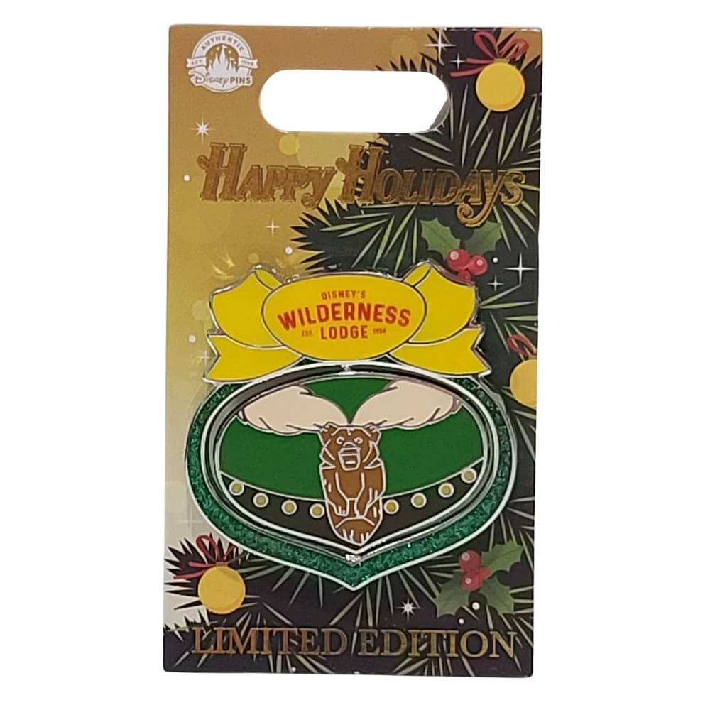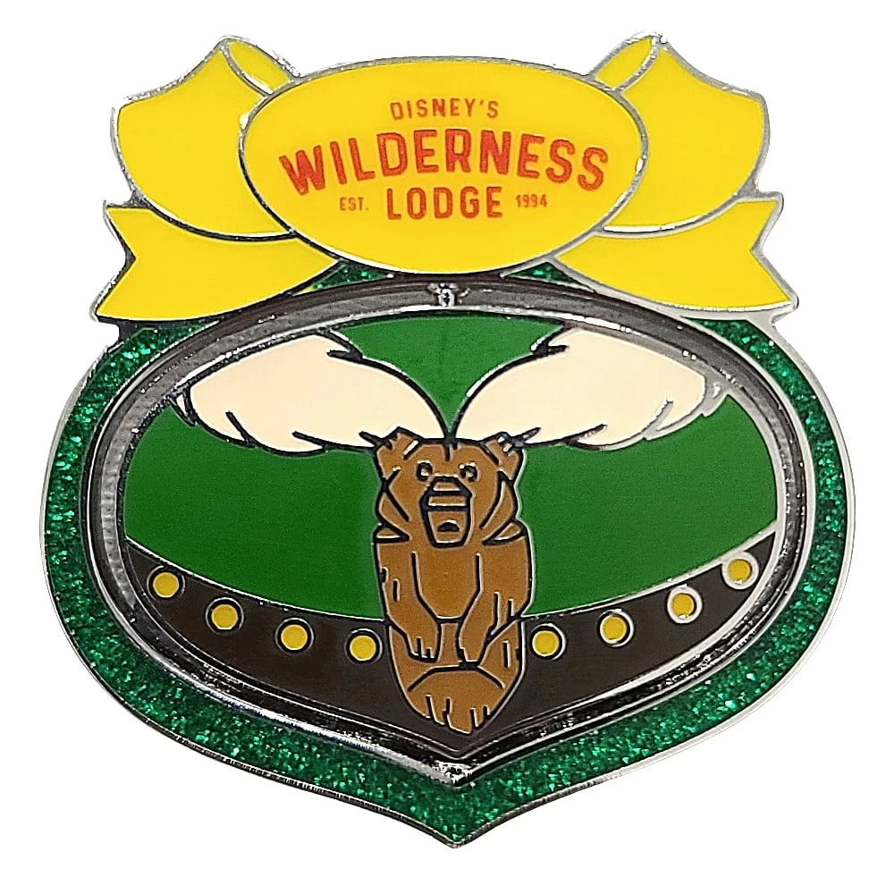 This 2022 holiday resort collection spinner pin is Limited Edition 2000 and features Denahi and Kenai from Disney’s Brother Bear and the Wilderness Lodge Logo.