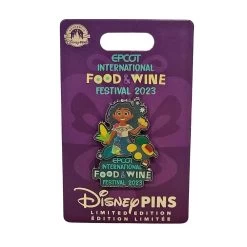 Embrace the enchanting spirit of Mirabel Madrigal with this Limited Edition Mirabel Butterfly Pin from the Epcot Food and Wine Festival! This exquisite pin features Mirabel gracefully holding a shimmering gold butterfly, accompanied by the festival logo in a design that captures her magical journey.