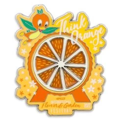 Celebrate the EPCOT International Flower and Garden Festival 2022 with this limited release Orange Bird Pin. It reads ”Think orange” .