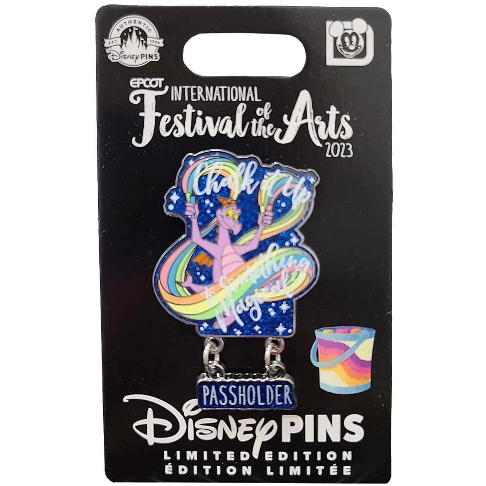 This Annual Passholder exclusive shows Figment creating a rainbow ribbon with a piece of chalk, while a “Passholder” charm dangles from the bottle. The pin has an edition size of 5,000.
