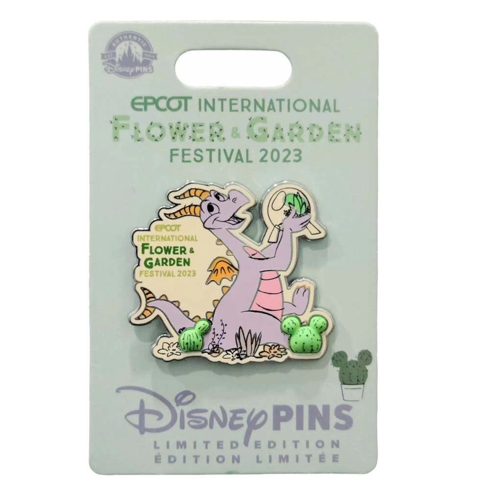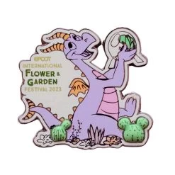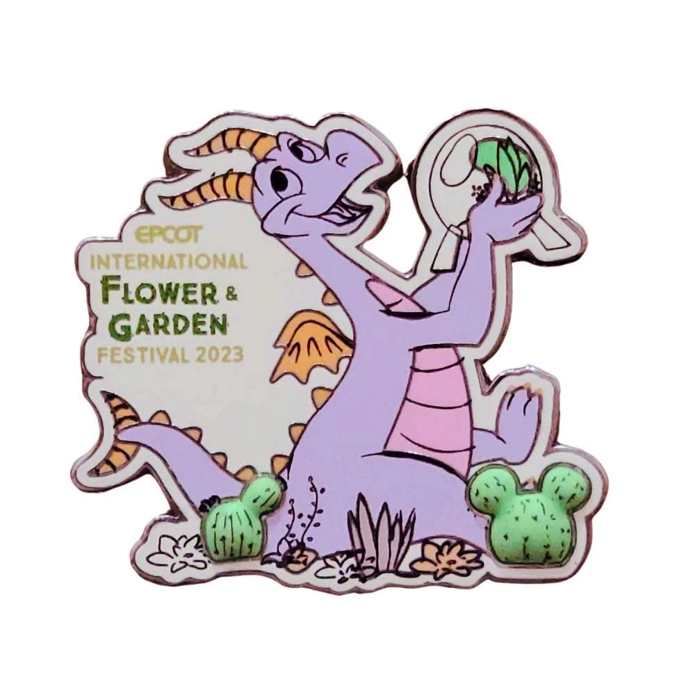 Figment sits among his collection of Mickey icon shaped succulents on this Limited Edition 2023 Epcot Flower and Garden Festival Pin.