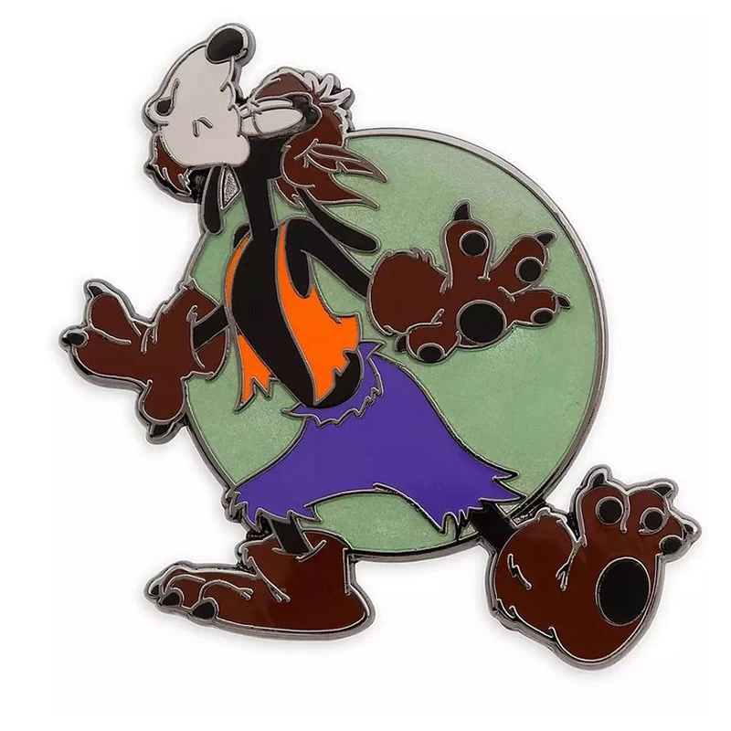Where wolf? There wolf! Goofy howls at the moon as he dresses up as for Halloween on this enamel cloisonné pin. You’ll definitely want to haunt this down for your Disney Pin Trading collection.