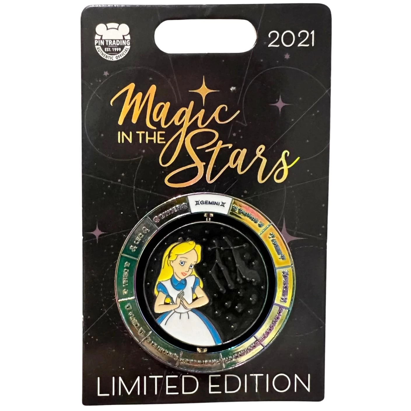 Discover the Magic in the solar system and enjoy a new twist on the Zodiac with the pin series featuring Disney Movie themes and characters. This pin features Alice In Wonderland.