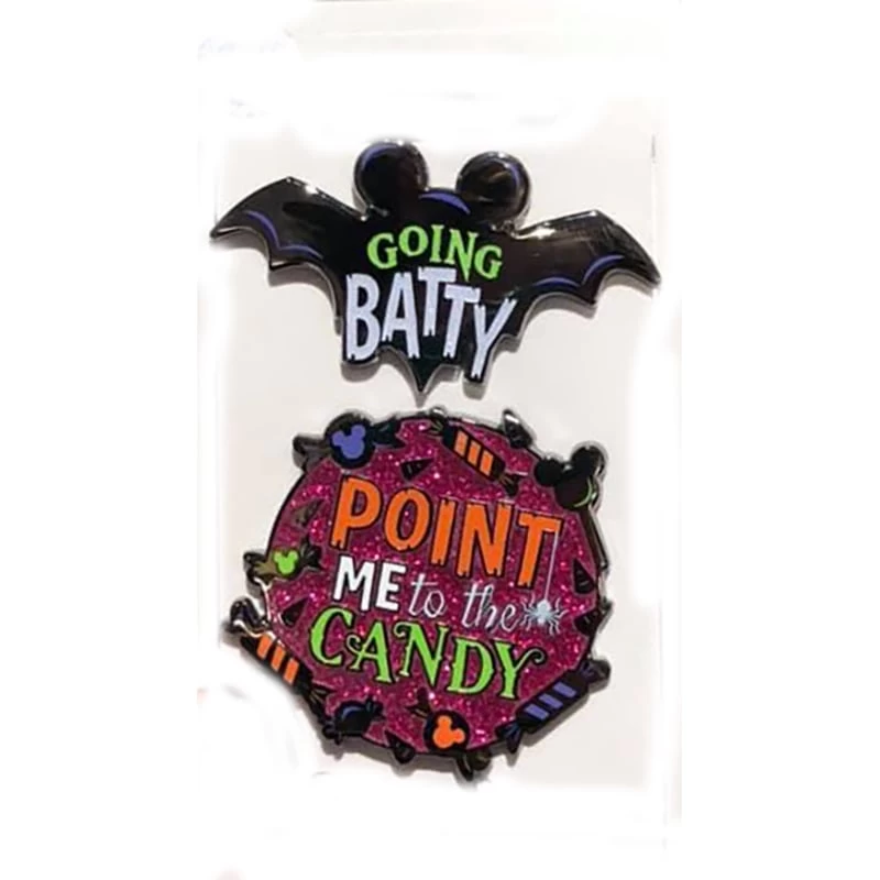 Disney Pin Set – Point Me To the Candy & Going BattyDisney Pin Set – 2 Pins: “Point Me To the Candy” & “Going Batty”