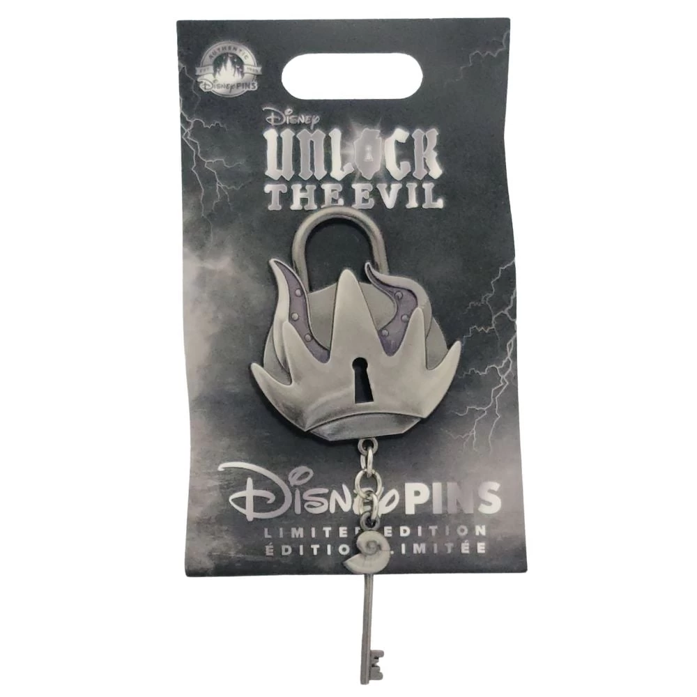 This pin is the fifth in the Unlock the Evil series for Disney Parks 2023. The Limited Edition pin features Ursula as a lock with a key dangle.