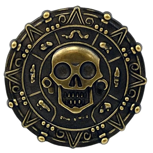 Ahoy! This pin resembles a sculpted-relief coin inspired by the coin used in Disney’s Pirates of the Caribbean: Curse of the Black Pearl motion picture.