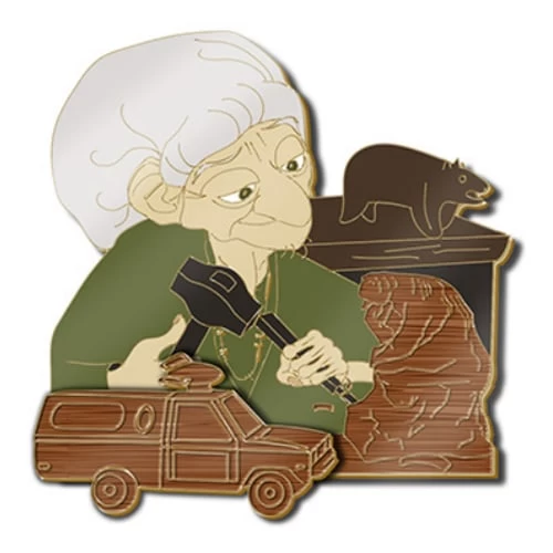 the Pizza Planet Truck is being carved by the Witch from Brave