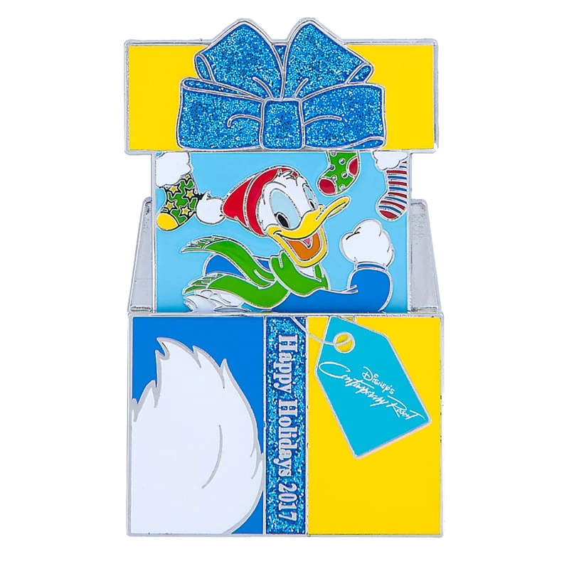 Celebrate the Seasons with this 2017 Happy Holidays collection of limited edition pins! Each pin features one of the Disney Resorts, and some of your favorite Disney Characters! These special pins depict a holiday gift that reveals a character and scene. Part of the Walt Disney World – Happy Holidays – Collectors Pin Series.