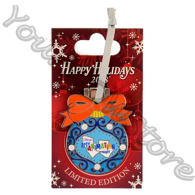 Celebrate the Seasons with this 2018 Happy Holidays collection of limited edition pins! Each pin features one of the Disney Resorts, and some of your favorite Disney Characters! These special pins depict an ornament that open up to reveal a character. Part of the Walt Disney World – Happy Holidays – Collectors Pin Series. This pin features Lightning McQueen and Tow Mater.
