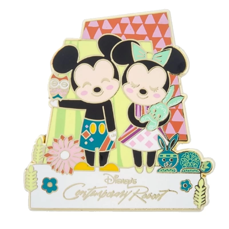 This pin features Mickey and Minnie together. Mickey is holding an owl and Minnie is holding a bunny rabbit. They are smiling because they are visiting Disney’s Contemporary Resort. You will be smiling also when you add this pin to your collection.
