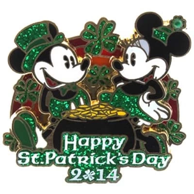 Mickey and Minnie wish you a “Happy St. Patrick’s Day 2014” on this limited edition pin.