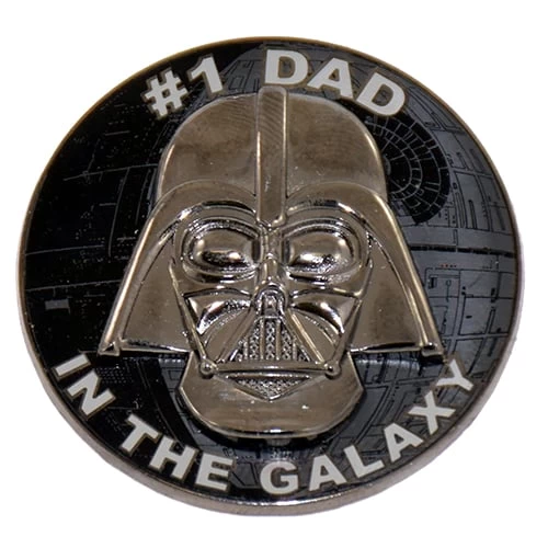 Darth Vader crosses from the Dark Side to embrace a new side and declares that he is the ”#1 Dad In The Galaxy” with this delightful pin from Walt Disney World.