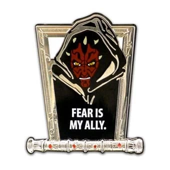 Fear Is My Ally. This limited edition sculpted lightsaber pin features Darth Maul.
