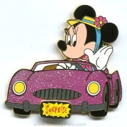 Minnie Mouse is sporting her shiny new car in this Limited Edition Surprise Pin. This pin features glitter on the car and a pin-on-pin surprise bumper tag. This pin is part of the four-pin “Glitter Cars Collection.” Unlike previously released “Surprise Pins,” this new collection will be announced ahead of the actual release date.