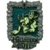 Tinker Bell, lifts a giant witch’s hat in this limited edition Mickey’s Not So Scary Halloween Party pin. The pin includes a pin-on-pin and free-d fill elements.