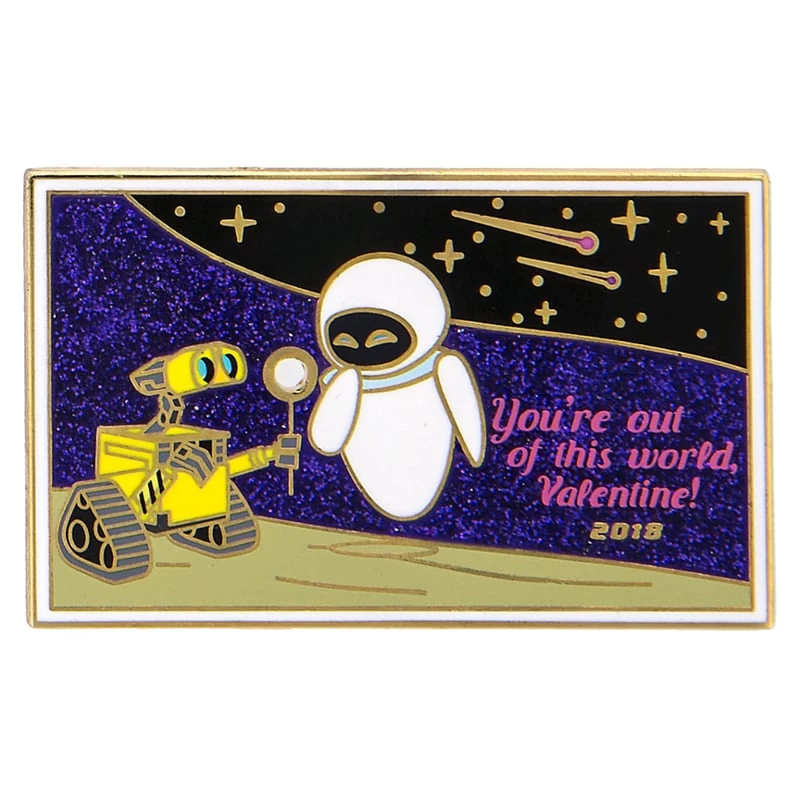 This limited edition pin celebrates Valentine’s Day 2018 and features Wall-e and Eve.