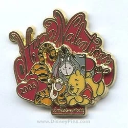 Winnie the Pooh, Eeyore and Tigger have gathered together to celebrate Valentine’s Day 2006 at the Walt Disney World Resort. This Limited Edition pin features Winnie the Pooh, Tigger and Eeyore as a pin-on-pin.